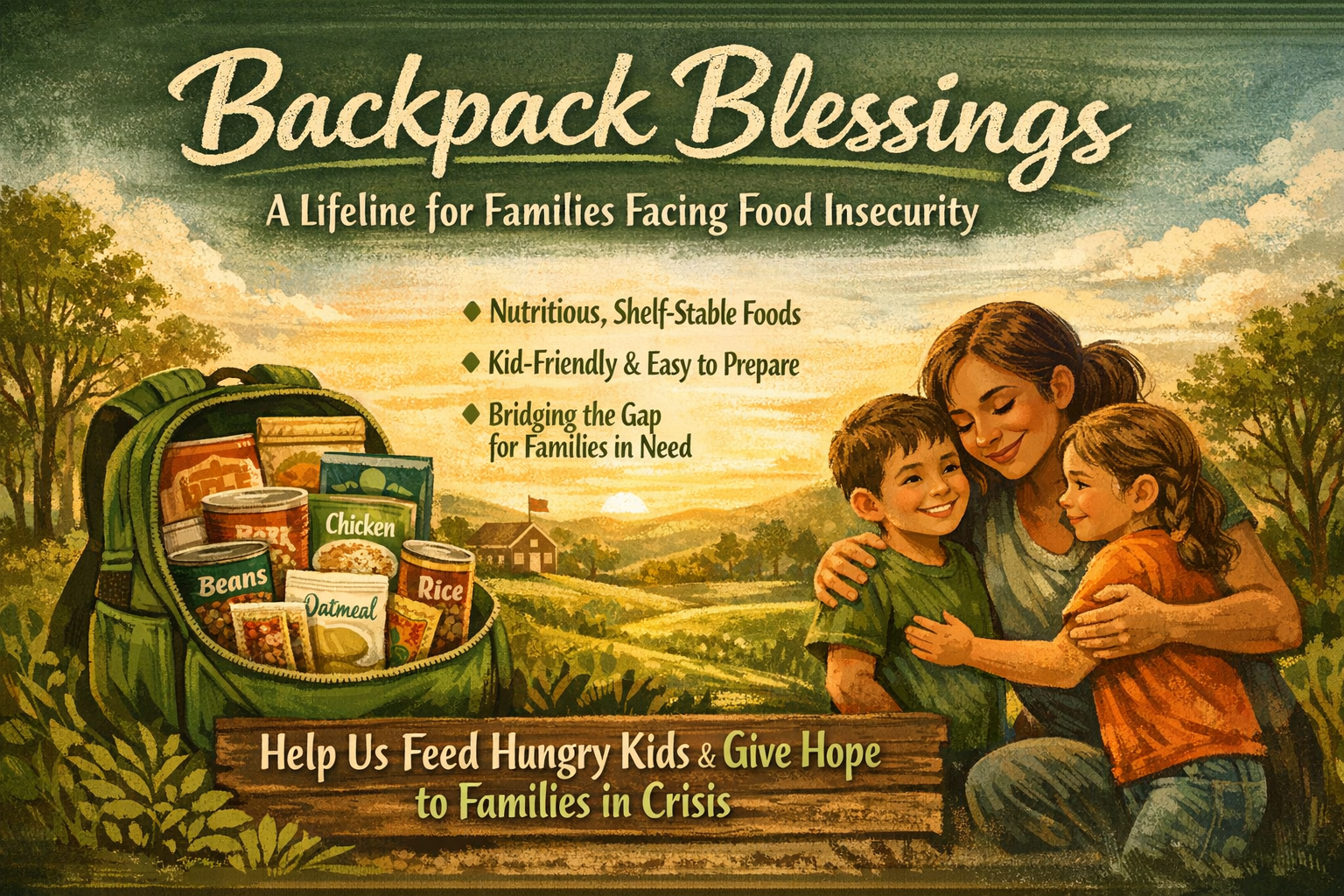 Monthly backpacks filled with nutritious, shelf-stable food to help families facing food insecurity.